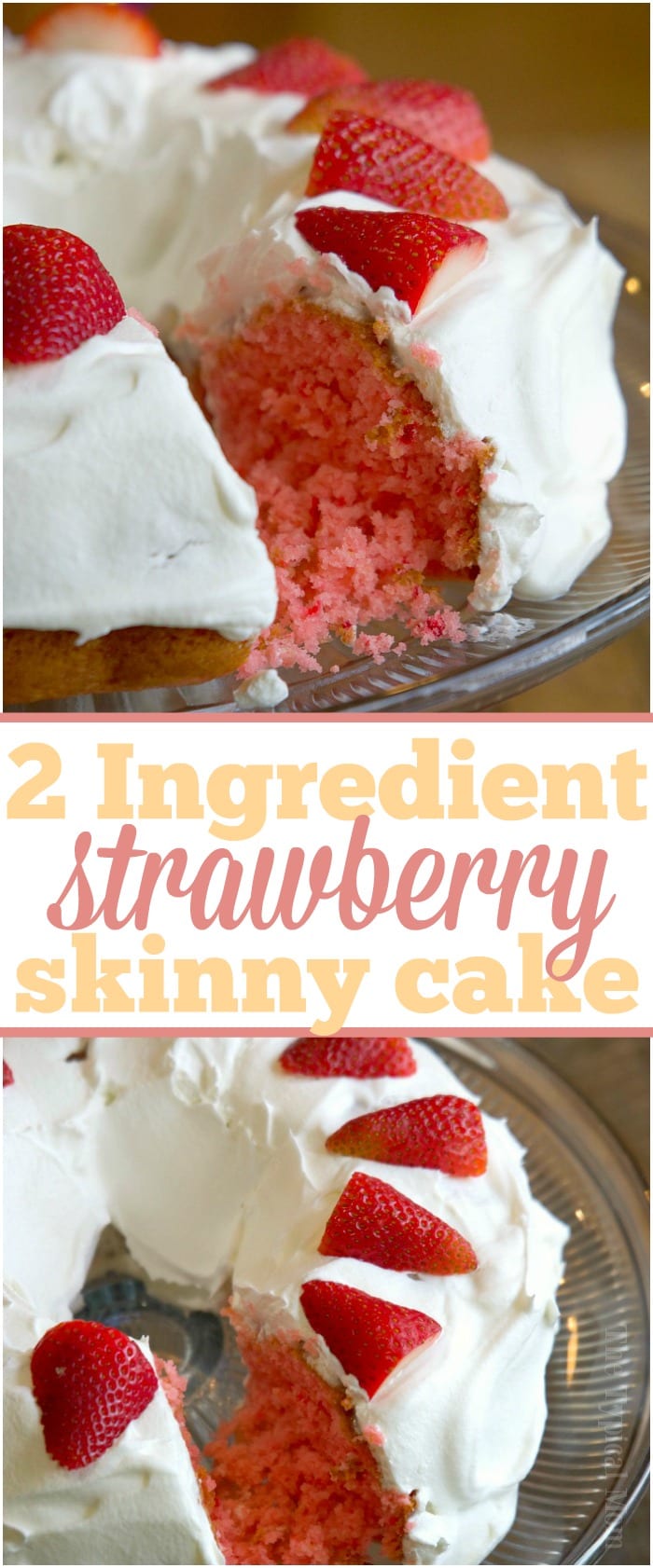 Believe it or not this comes out super moist. There are a lot fewer calories since you need no eggs or oil to make it. If you use a light version of everything you can really call it a skinny cake! This 2 ingredient cake reminds me of the strawberry cake in a mug we make pretty often, just in a larger form so you can share. 😉