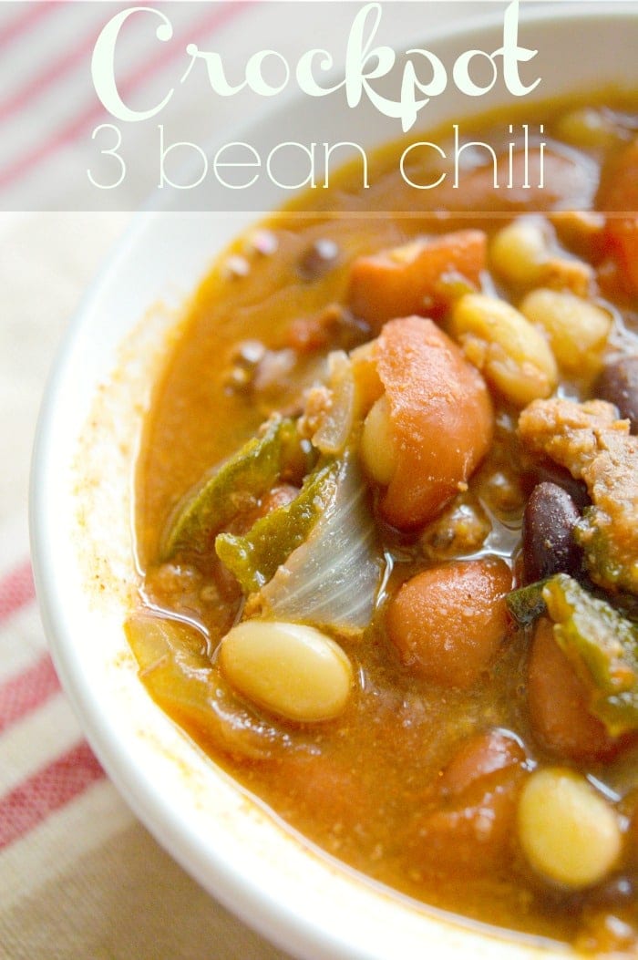 3 bean chili crockpot recipe everyone in your family will love! You only need a few ingredients and you can make it a 4 bean chili too!