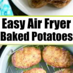 Crispy air fryer baked potatoes are a game changer! With a soft tender inside they come out like Texas Roadhouse for a side dish or dinner stuffed with chili! Make in a Cosori or Ninja Foodi baked potatoes.