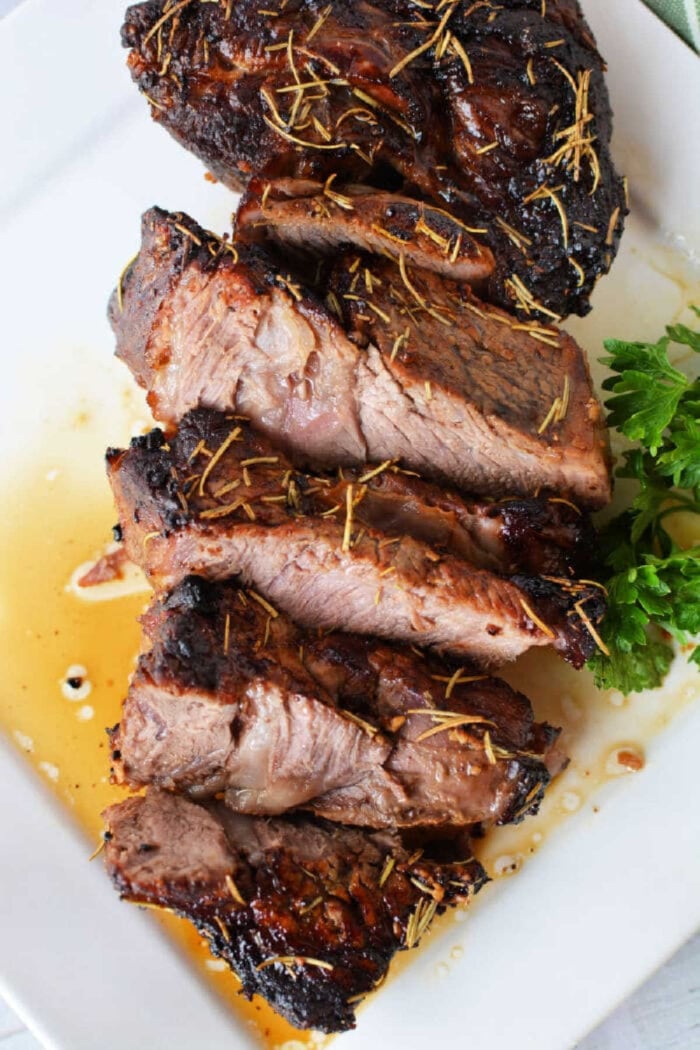 As always you should never ever slice your protein right after it’s done cooking. You will loose all of those wonderful juices on to your cutting board if you do. You want that to stay inside so that with every bite you can enjoy those flavors. Once it is removed, cover so it stays warm for a good 10 to up to 20 minutes. Then use a sharp knife to slice.