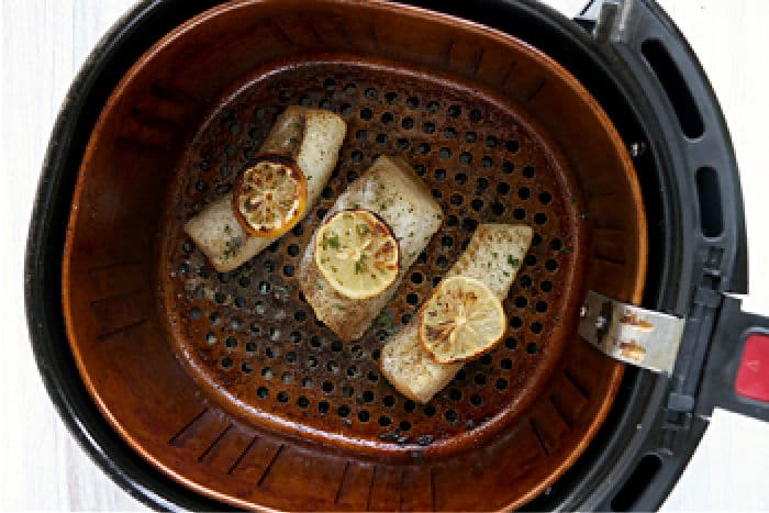 These pictures feature cod fillets, but any white fish would cook similarly with the 12-minute cooking time. The biggest difference is the thickness of the fillets. Follow the directions on our air fryer tilapia and air fryer catfish posts and see which way you like the best.