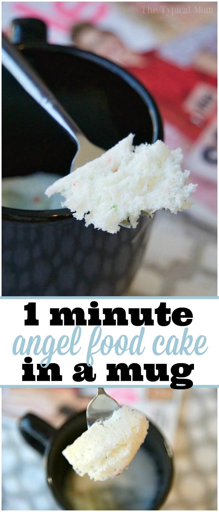 Easy Angel Food Cake in a Mug recipe that takes just 3-2-1 minute to prepare and cook perfectly until it’s done to fluffy perfection! This is How to Make a Mug Cake with Cake Mix, our favorite fat free dessert for one that’s a guilt free treat.