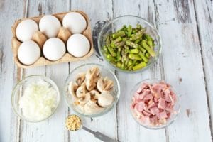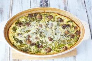 Who doesn’t love asparagus in the air fryer or grilled on the barbecue??!! Even if they weren’t in season you can swap it out for something else like broccoli. This breakfast egg bake is very versatile like that.