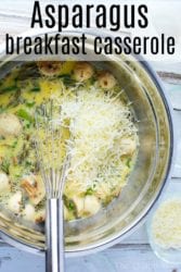 Cheesy egg asparagus casserole is a great addition to any family brunch table! Great with bacon or leftover ham inside for breakfast to start the morning. Family friendly, cheap with vegetables inside you’ll love.