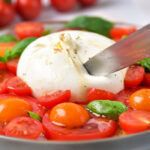 This is how to make Burrata Caprese appetizer, salad or pasta. A light and tasty Italian dish with tomatoes, cheese and balsamic dressing. One of our favorite creamy quick and easy side dish that is fun to eat at a party.
