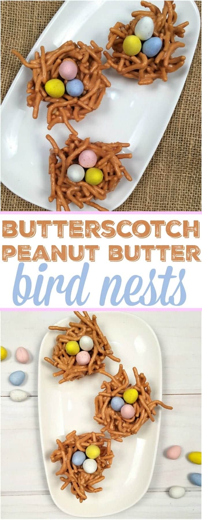 Have you ever made Easter butterscotch haystack nests for dessert? They are a really delicious peanut butter and butterscotch treat that only takes a few minutes to make and no baking is necessary!