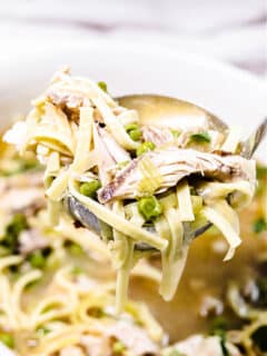If you too hate wasting food you might be wondering can you freeze chicken noodle soup? You totally can and it’s pretty darn easy. Then we will share how to reheat soup when you’re ready to enjoy it again the next day or weeks later. (affiliate links present)