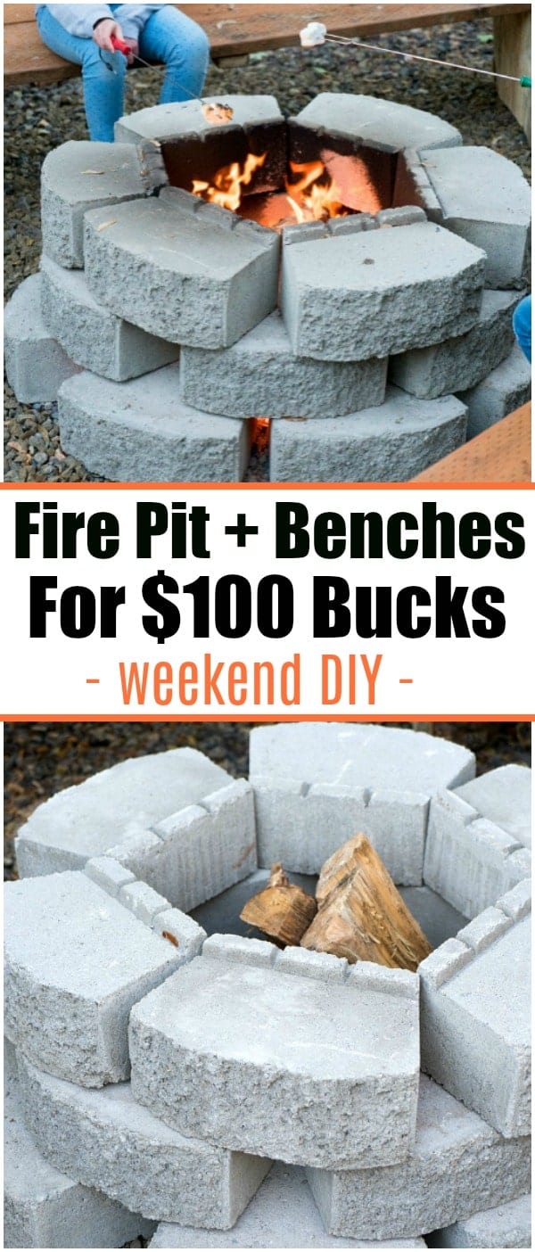 Backyard fire pit ideas + 2 benches made from trees for just $100 dollars. Plus other do it yourself outdoor projects your family can make and enjoy in your backyard.