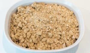 All purpose flour is the beginning for the oat crumble. Incorporate in a mixing bowl with softened (not melted) butter and some shortening. You could use a dairy free alternative for butter and it will taste the same.