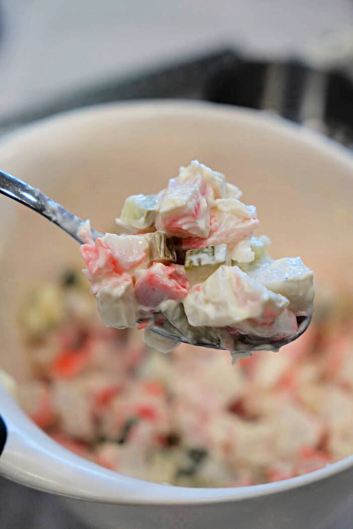 I think the worst mistake you can make when you create any sort of meat mixture like this is to add too much mayonnaise. You just want enough to make it kinda’ creamy, stick together but not too much that is tames down the flavor of the fish and other ingredients.