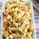 Feel free to mix and match these ingredients to create a pasta salad that suits your taste preferences and dietary needs. Keep it super simple like our 4 ingredient pasta salad or go all out with all the things.. Remember to balance flavors, textures, and colors for an appealing and satisfying dish. It’s nice to have a few easy side dish recipes ready for when it’s time for a BBQ or otherwise. If you love this creamy pasta salad recipe try this: