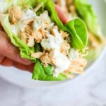 Buffalo chicken sliders are so good! Make into low carb lettuce wraps or on small Hawaiian buns as an appetizer or meal. Made in a slow cooker means it takes 5 minutes to prep and dinner is done at the end of the day.