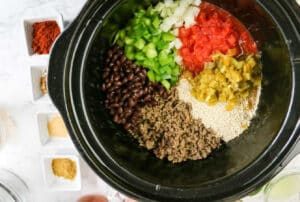 Ground beef or spicy ground sausage is amazing too if you like a bit of heat. This will need to be precooked before adding it into your pot. You can make Crockpot ground beef first but same day you wouldn’t have time to make that and this unless you started really early in the morning.