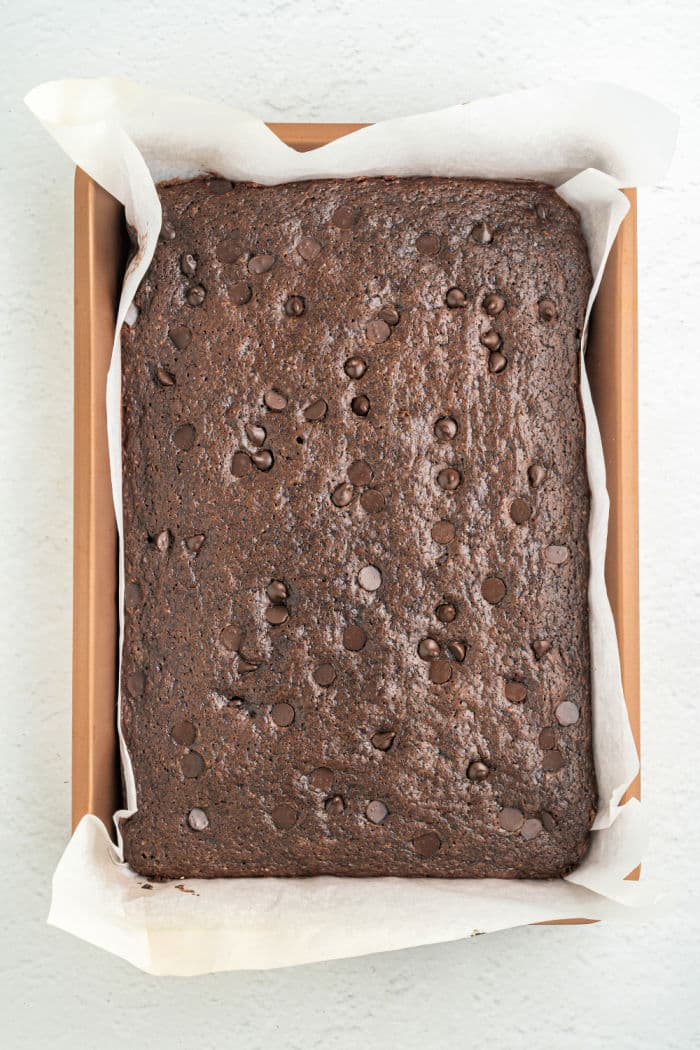 - Fold it into the prepared pan. Extend it evenly. Sprinkle chocolate chips (if desired) on top of the brownie. Bake for 18 to 20 minutes or until the center is set.