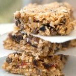 These easy homemade granola bars aren’t just for the kids though, they’re a perfect bite in the morning with my coffee when I’m getting ready to start my busy day! Kept in the refrigerator they stay fresh for over a week but usually don’t last that long.