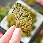 How to make kale chips in the oven at 275 recipe. A healthy snack recipe for everyone, even you non believers! We’ll convince you that baked is just as delicious as our Ninja Foodi kale chips and just as crispy. A delicious and the perfect healthy snack.