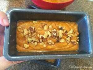 Here we explain how to bake this in the oven. This sweet bread that is a perfect Fall treat is great for a brunch, dessert or yummy breakfast. This recipe below explains the time and temp. to make 2 Loaf pans full, there are other baking options below too though.