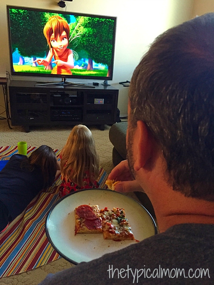 Now it was time for your own family movie night ideas beyond the ones we shared here! As you can see, Daddy got overruled and a fairy movie it was that night! It was a great evening together, great food was made thanks to