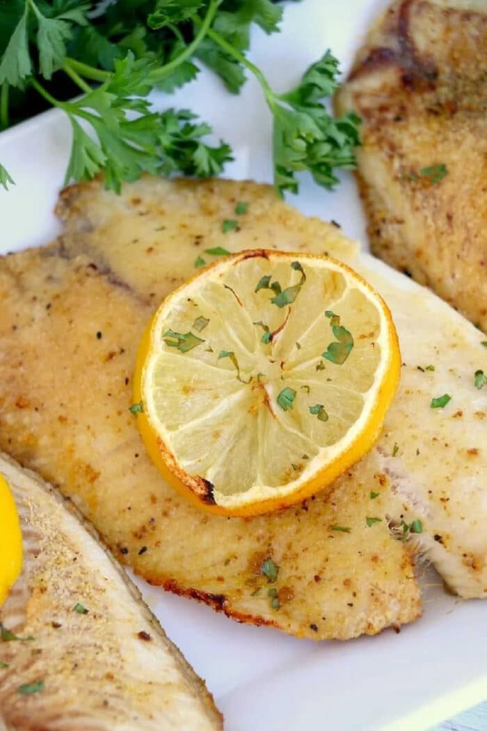 Tilapia was bought from the grocery store in a bag, but you could find halibut just as easily if you preferred that seafood variety. Grab some fresh lemons and parsley while you’re there and get to cookin’ y’all!