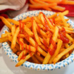 You can choose the straight or Frozen Waffle Fries in Air Fryer timing is here. The thicker they are the longer they will take to cook thru to the middle so don’t mix and match. Now air fryer potato wedges are the longest because of the thickness.