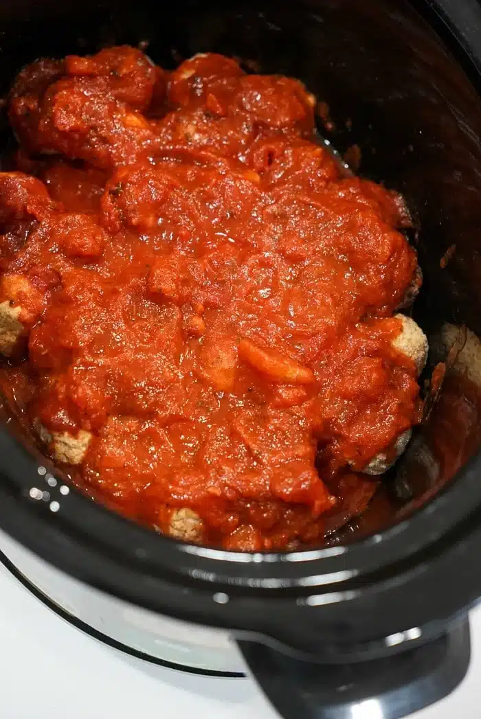 Frozen Meatballs in Crockpot with Spaghetti Sauce