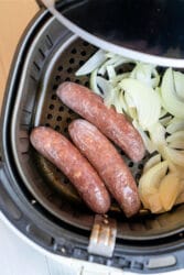 Alternatively to make air fryer sausage and peppers you can cook them together. Follow timing on our air fryer peppers dish and add slices to that, same timing applies.