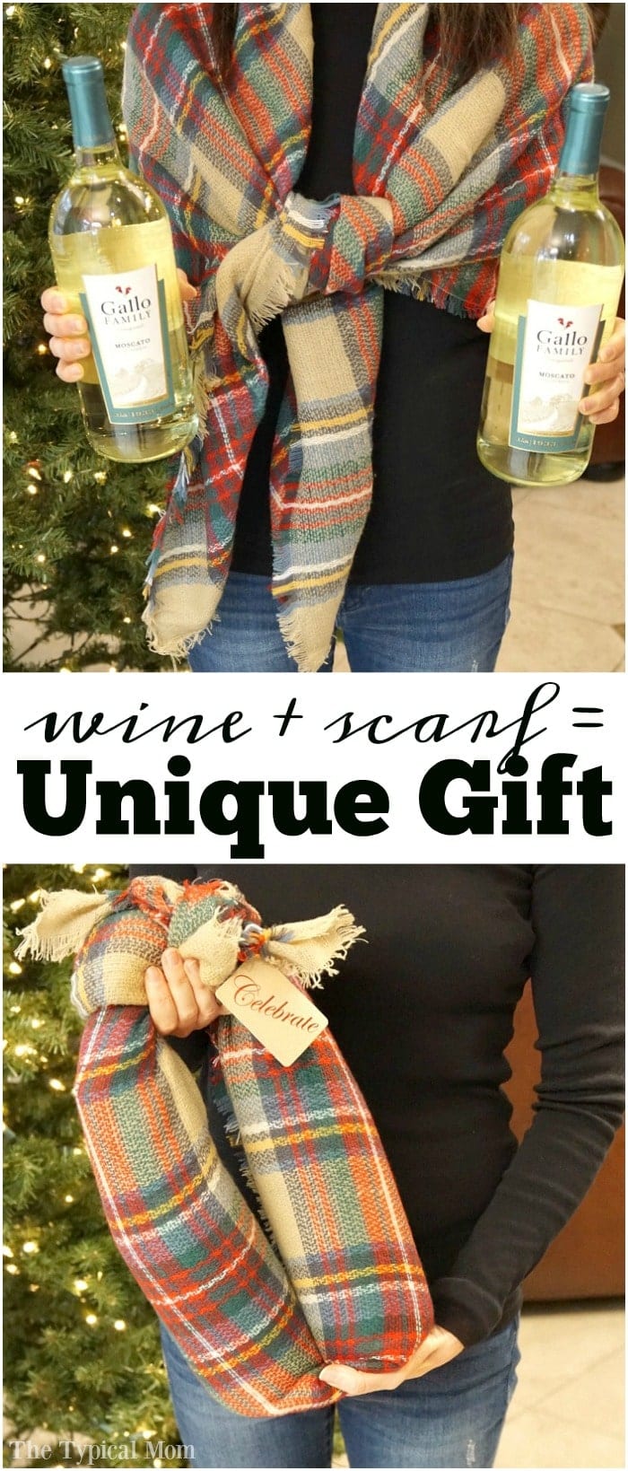 This is a great way to gift wine. You not only give that special person two bottles of wine, but a great scarf to wear throughout the year too! Do you know how to gift wine bottles in a scarf?? This is so fun!! Sponsored by Gallo Family Vineyards. (affiliate link present)