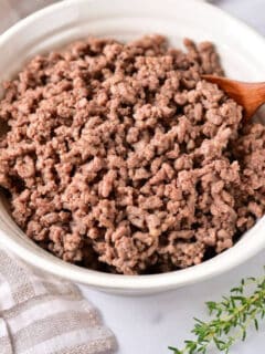 This time shredded cheese was added to our air fryer ground beef recipe, that is optional of course. If you are lactose intolerant or need a dairy free option you wouldn’t need that. Sharp cheddar is a wonderful add in though. This is what was used this go around that you’ll need to get ready;