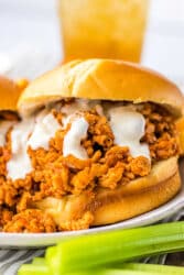 If you haven’t made gound chicken sloppy joes yet this recipe is killer! I have cooked them in a skillet and slow cooker with this spicy buffalo sauce and both get eaten up by my family (there’s never leftovers).