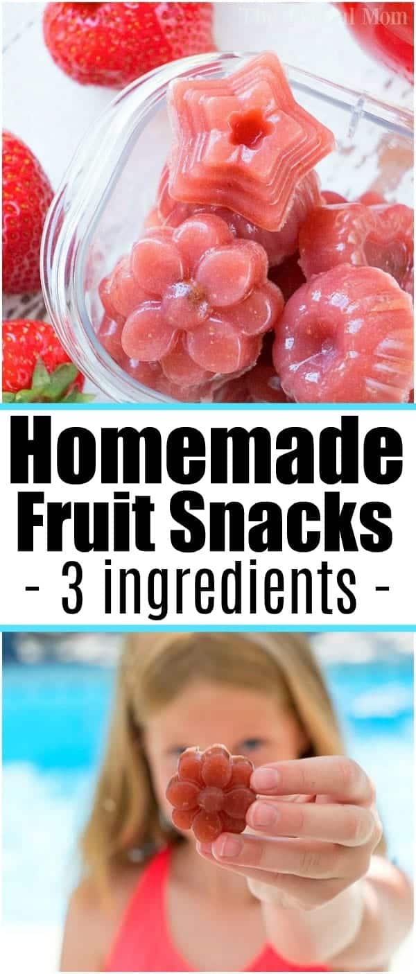 Easy homemade fruit snacks with juice recipe! Only 4 ingredients to make sweet jellies complete with Vitamin C and real fruit! We used fresh strawberries for this one but blueberry would be wonderful too.