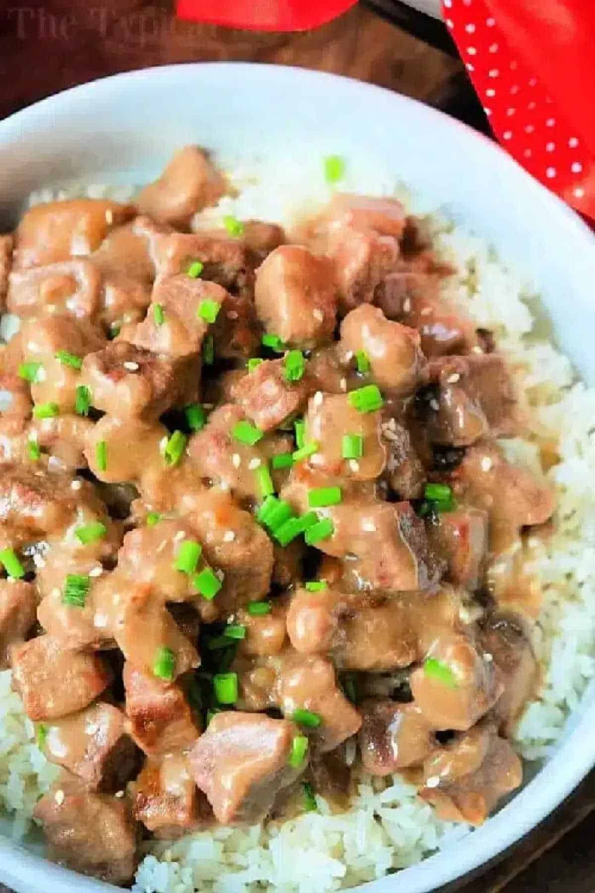 Instant Pot white rice, egg noodles, or mashed potatoes to serve on the side typically. If you wanted to add some heat to make it a bit spicy that is an option as well. I would use 1/4 tsp of red pepper flakes for this.