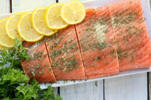 You can use our salmon dry rub if you want to add a lot more flavor. Do so before cooking or when done you could use it as a seasoning.