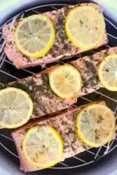 Can you make this as a Ninja Foodi recipe too?? Of course you can!! Any brand will do. the only difference with this multi function machine and others is that you need to use the lid that is not attached to pressure cook. However, then you can also follow our air fryer frozen salmon instructions if you’d rather.