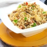 Our spicy Instant Pot ground beef and rice recipe is a hearty meal sometimes called dirty rice. Served as a side dish or dinner as an easy Ninja Foodi recipe you can add diced vegetables like bell peppers and onions inside too if you like.