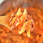 Instant Pot penne pasta with jar sauce and ground beef recipe is an easy one pot meal everyone loves. A little like our Ninja Foodi spaghetti using the pressure cooker function but with different noodles.