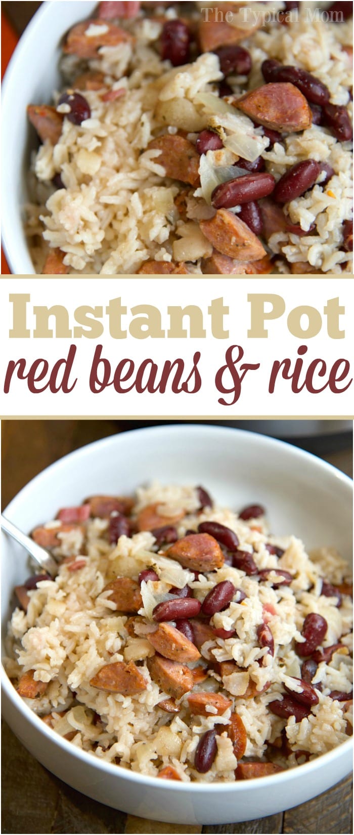 Start by sautéing onions, garlic, and bell peppers in the Instant Pot using the Sauté function. Once softened, add canned red beans (drained and rinsed), cooked sausage or ham, Cajun seasoning, thyme, bay leaves, broth or water with uncooked rice on top. Lock the lid, set the Instant Pot to high pressure, and cook for less than 15 minutes and done!!