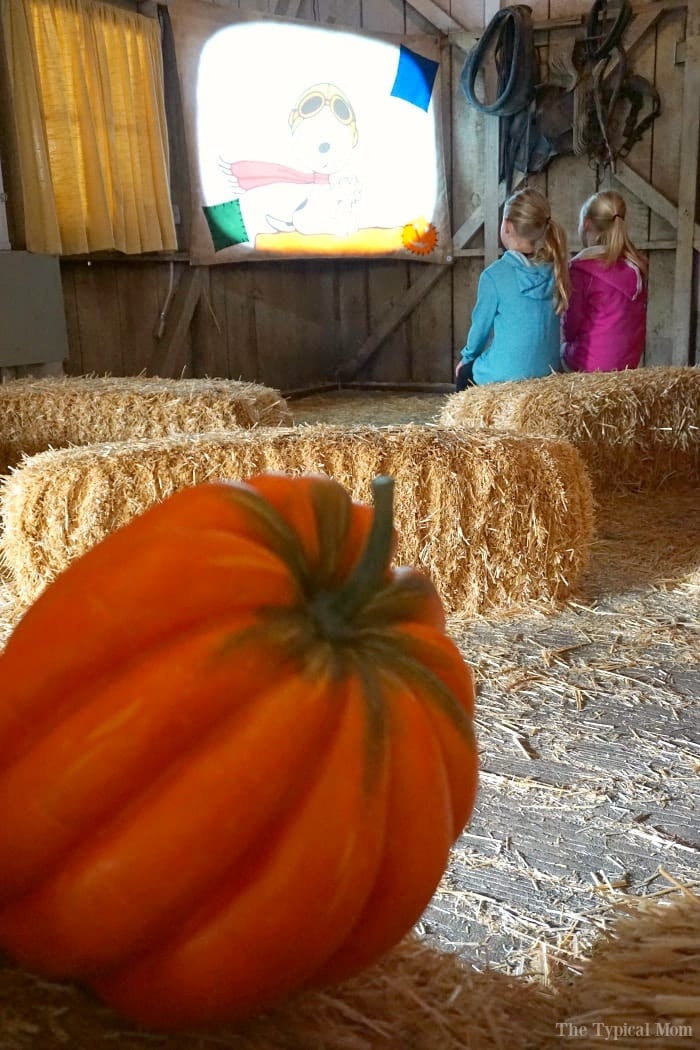 The stables transforms into a place where you can see and pet horses into a fun area. Filled with coloring, hay bales, games, painting pumpkins, and classic Peanuts movies playing in the corner.