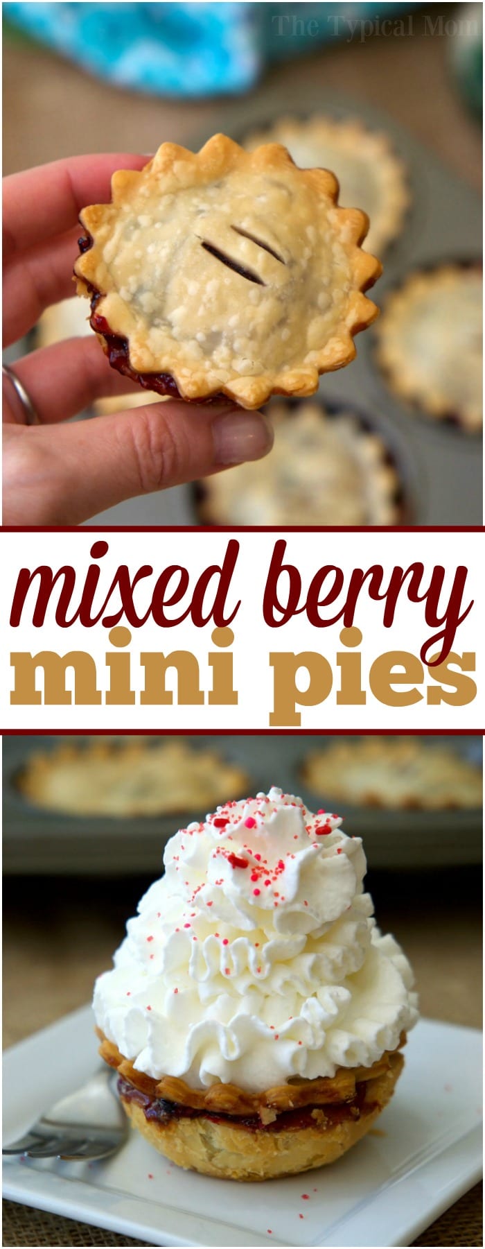 Mixed berry muffin tin mini pies are cute, and delicious! Easy muffin tin recipe that is packed with fresh berries and simple ingredients for the perfect dessert.