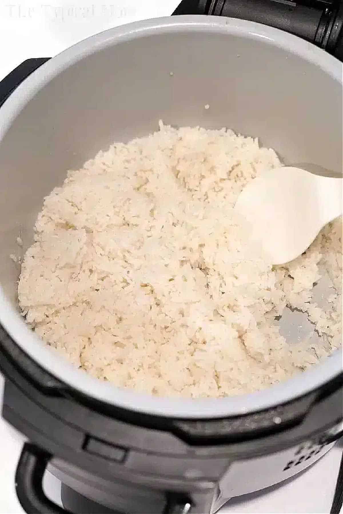 6. I’ve made this several times. Perfect recipe. I bulk cook it and do 4 cups rice and 5 cups water. Time is perfect at 2 min HP 10 min natural release, QR. I fluff it and let it sit. Freeze it and it reheats perfectly