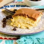 I mean, what busy Mom doesn’t love a tasty treat that’s EASY but nobody will know you didn’t bake it? If you’re anything like me, this no bake eclair cake is going to “take the cake” for you too. 😉 (affiliate links present)