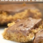 Although there is no baking required you do need some heat. You’ll need a pot to warm the peanut butter and karo syrup to smooth, and I like to melt chocolate chips in microwave for the top to make that part easier. 😉
