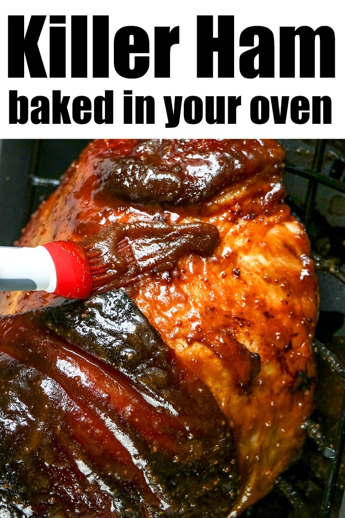 I mean this step isn’t necessary but it sure makes it taste amazing if you do. Another reason, other to add flavor, is to keep it moist. You don’t want to do it too early or the sugars in it will cause it to burn before the inside is as warm as you’d like it to be. Instead, wait until the last 20 minutes or so to brush it on, then let it caramelize on top until YUM. The exception to the rule is if you use a slow cooker like we did to make coca cola ham.