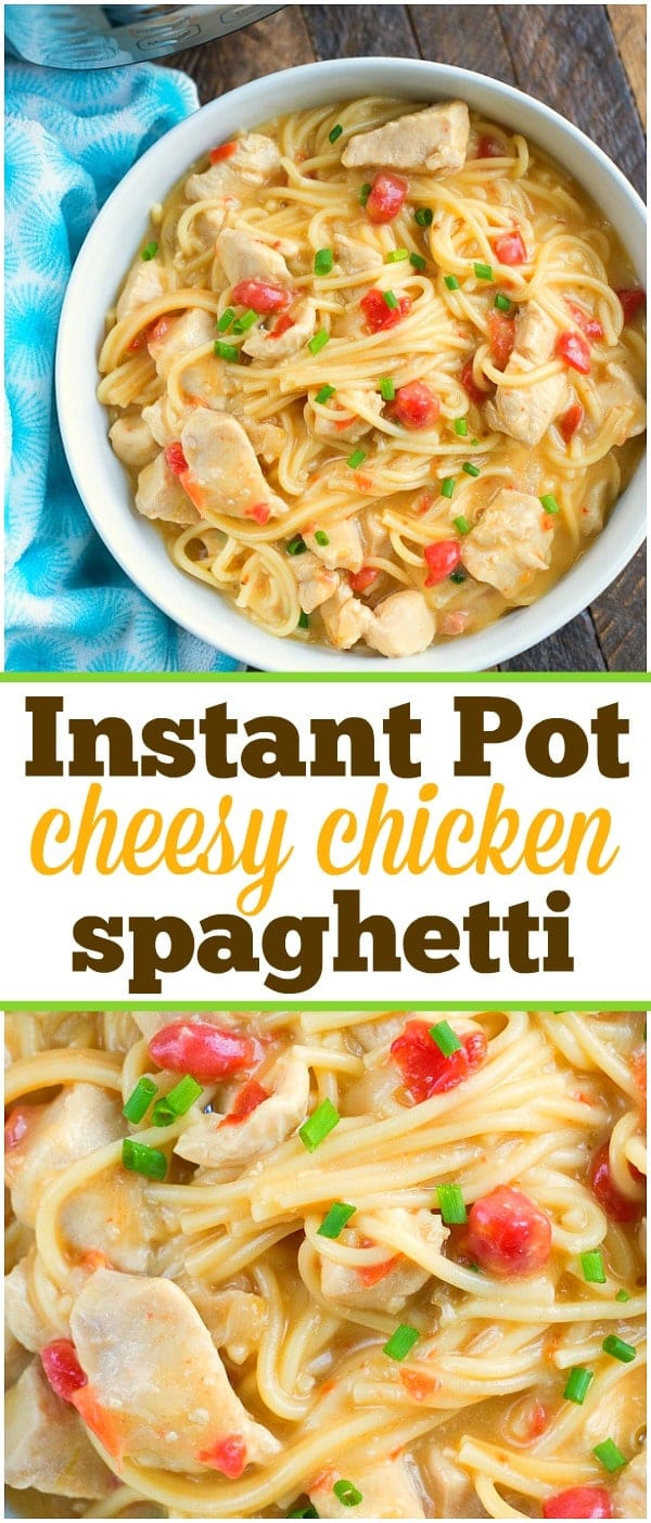 I’m here with pressure cooker cheesy chicken spaghetti to add to our long list of easy Instant Pot recipes. If you’re ready to amp regular Instant Pot spaghetti up to the next level with cheese and a bit of a kick this is the next dinner you need to make! (affiliate links present)