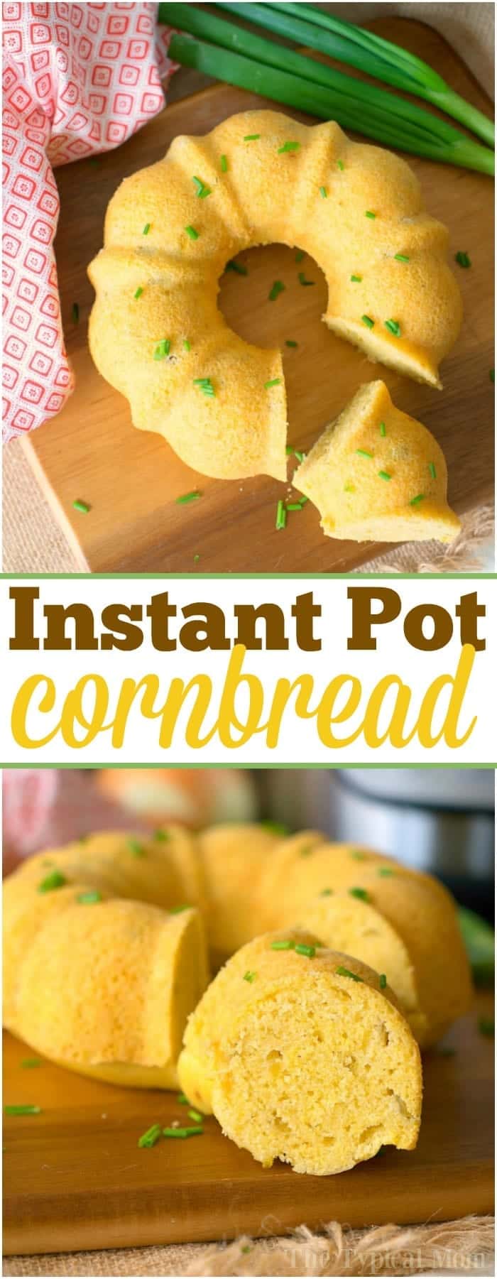 Homemade Instant Pot cornbread with buttermilk is the perfect side dish for any holiday and great with chili! It is easy with a homemade batter or Jiffy muffin mix in a mini bundt pan. You can even add some chiles or jalapenos to make a bit spicy.