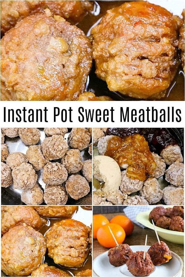 Combine 1/3 cup orange marmelade + 1/4 cup brown sugar + 1/2 cup apple cider vinegar + 1/2 cup barbecue sauce + 1/2 cup water or broth and if spicy add 2 tbsp Sriracha. Stir until smooth and add frozen meatballs, stir to coat. Then use the same timing above, 5 minutes on high with quick release.Alternative Sauces