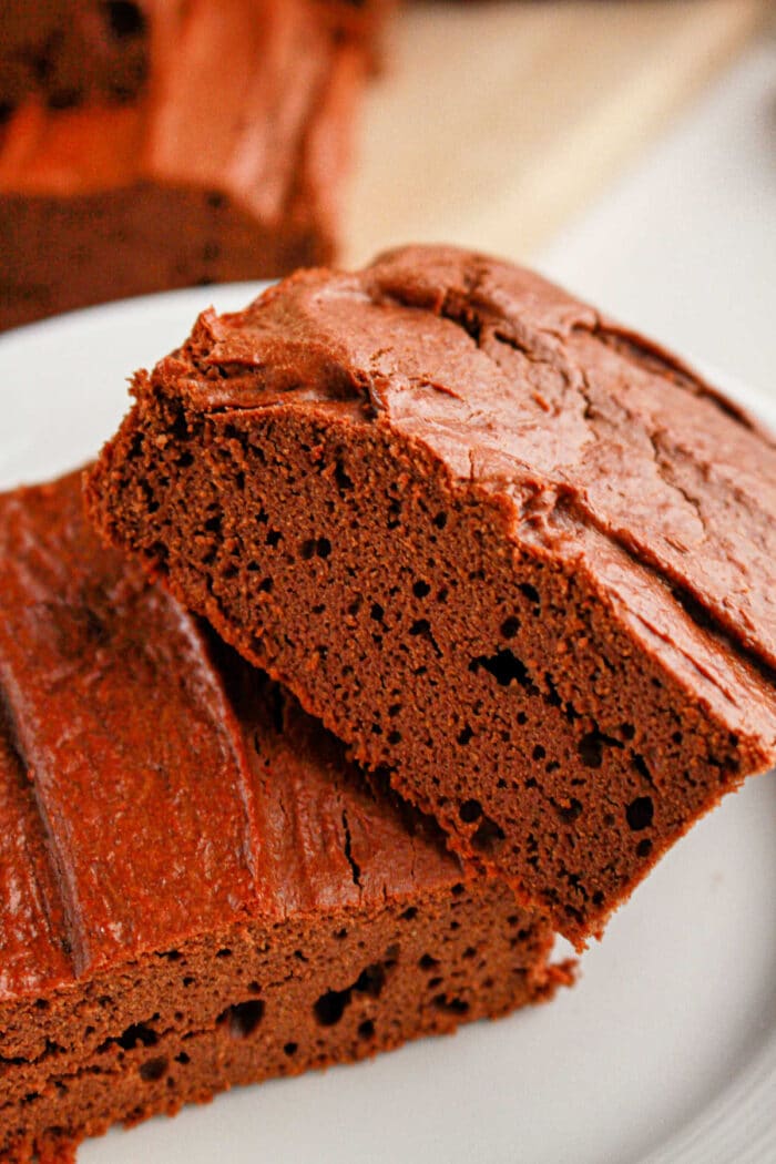 That depends on the brand you use and how large your piece is. According to the nutritional information in our recipe card below though you get 11 grams of protein per piece which is quite good since it’s a dessert!