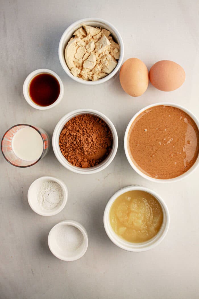 - *The amount of milk may vary depending upon the brand of nut butter used as some brands are runnier than others. If the batter is too thick, start by adding an extra tablespoon of milk at a time until it reaches brownie batter consistency.