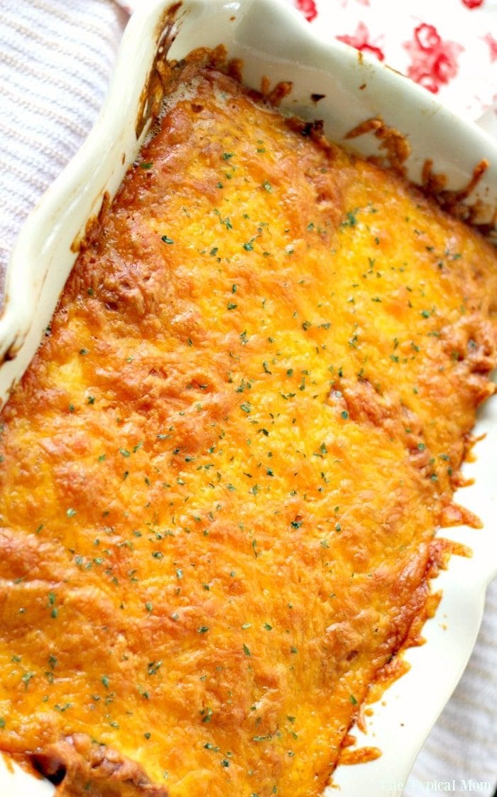 It’s kinda’ like lasagna with the layering. I like to use both mozzarella and sharp cheddar but use whichever you’d prefer or both. Serve on the side of chicken breast, or it’s a great dish to use your leftovers in!