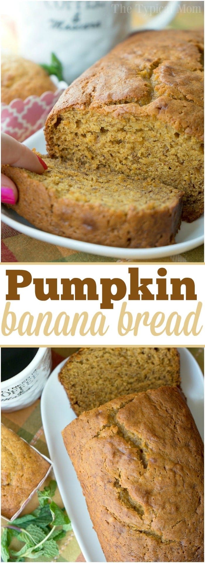 Well, it tastes even better. If you love homemade banana and moist pumpkin bread you are going to LOVE this combination. The moistest and most flavorful sweet bread you’ll ever try.