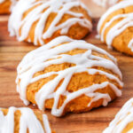 Our homemade Iced pumpkin cookies recipe are soft with a cream cheese glaze on top. Baked in the oven you can make the dough from scratch or you can use our Pumpkin Cookies with Cake Mix with this same frosting as well.